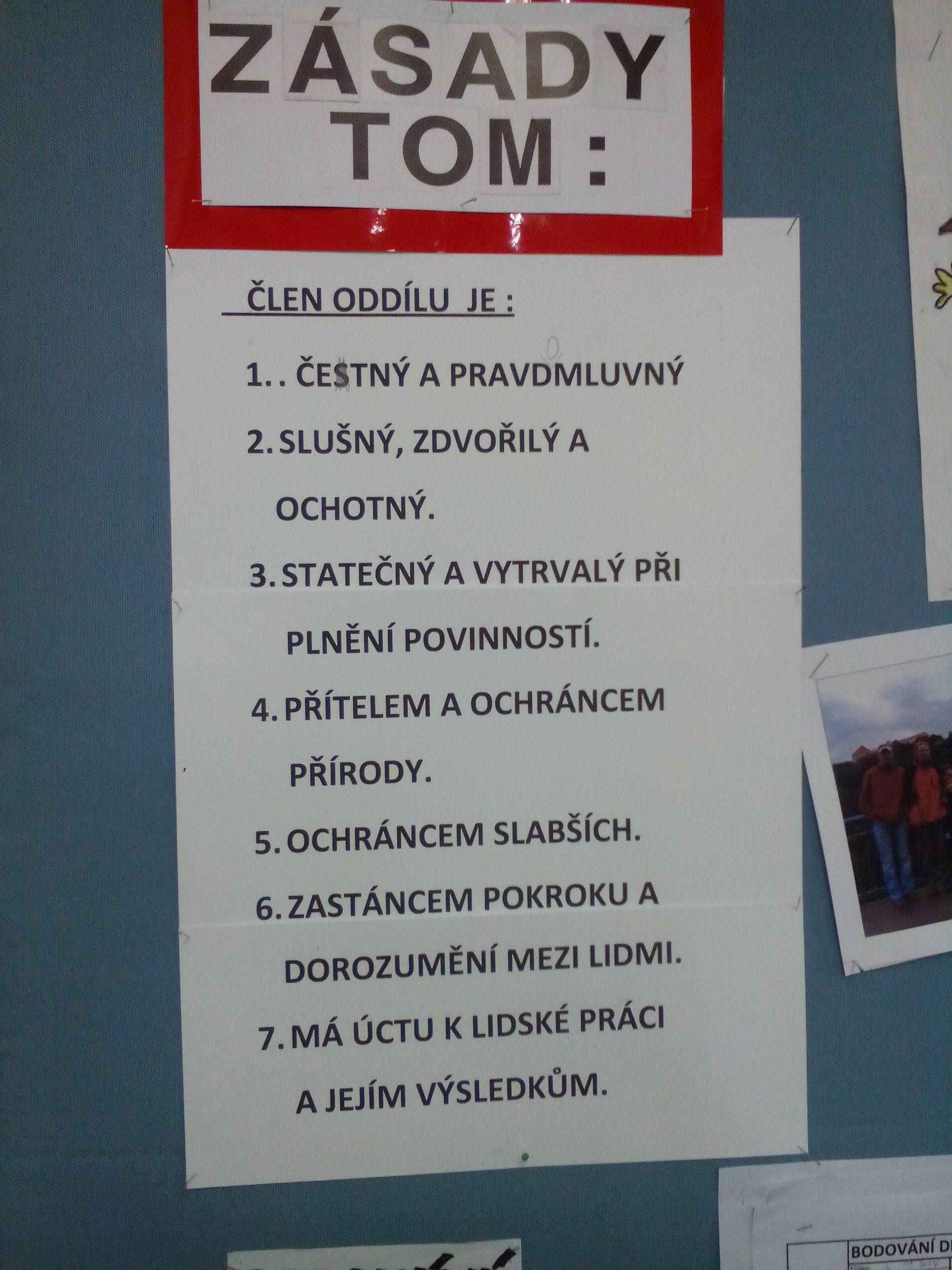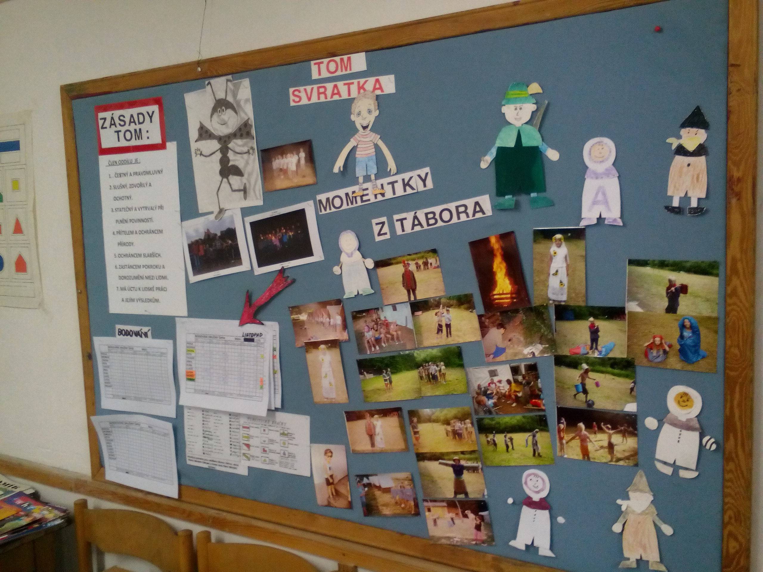 naše nástěnka obsahuje naše zásady, různé poučné materiály a přehledy a hlavně fotky z našich táborů a výletů či jiných akcí.